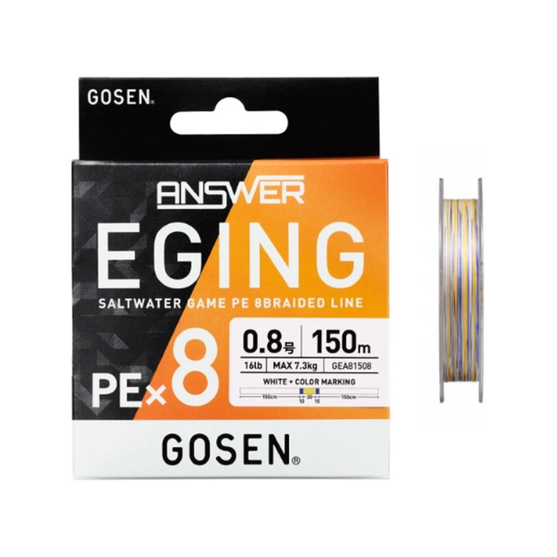 Μπείτε στον μαγικό κόσμο του Eging, με ένα πολύ ποιοτικό νήμα όπως το Gosen Answer Eging μία μοναδική επιλογή για τους λάτρεις της τεχνικής. Η φιλοσοφία της Gosen, στο συγκεκριμένο νήμα είναι η πολυετής πείρα στον τομέα ενσωματώνοντας κορυφαίες τεχνολογίες όπως την MPX που του δίνει αντοχή στην τριβή και στα απότομα τινάγματα. Συνδιάζοντάς την με τον μέθοδο κατασκευή HDX αυξάνει την ευαισθησία και τη δύναμη του σε σημείο να μας δίνει το απόλυτο νήμα για την τεχνική του Eging.