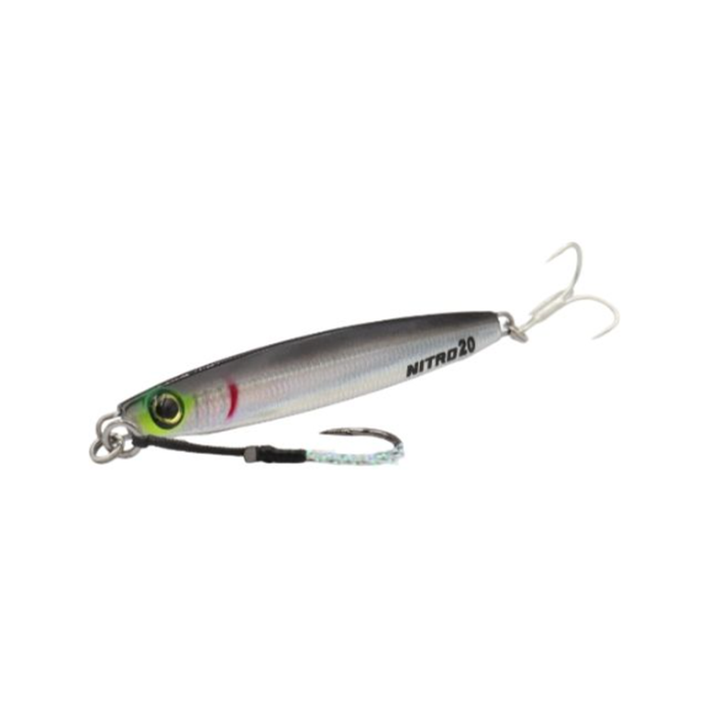 Ο πλάνος Xesta Casting Nitro 40gr είναι μία εξαιρετική προταση για Shore Jigging σχεδιασμένος ειδικά για slide action. Αυτό σημαίνει ότι μπορεί μετά το χτύπημά μας να κρατάει την κίνησή του και κατά την πτώση του να δίνει χρόνο στα αρπακτικά να τον τυπήσουν καθώς πεταρίζει προς τα κάτω. Το λεπτό του σώμα με την χαμηλή αεροδυναμική και υδροδυναμική αντίσταση αλλά και την άρτια ισορροπία όχι μόνο διευκολύνει τις μακρινές βολές, αλλά μειώνει και την αντίσταση κατά τη διάρκεια του jerk. Με ελαφρύ jerk, κινείται αριστερά και δεξιά και η ακανόνιστη επίπεδη πτώση του προσελκύει διάφορα είδη ψαριών, από πελαγικά μέχρι βενθοπελαγικά όπως συναγρίδες και μαύρα. Είναι εξοπλισμένο με ένα μονό assist hook μπροστά και μία σαλαγκιά πίσω που σας εξασφαλίζει την ασφαλή συγκράτηση του ψαριού και το ευκολο κάρφωμα. Αυτό το slide-type casting jig είναι πολυχρηστικό και κατάλληλο για παιχνίδια από πολύ ελαφρύ shore jigging (SLS) μέχρι medium shore jigging αναλόγως τα γραμμάρια που θα επιλέξετε.